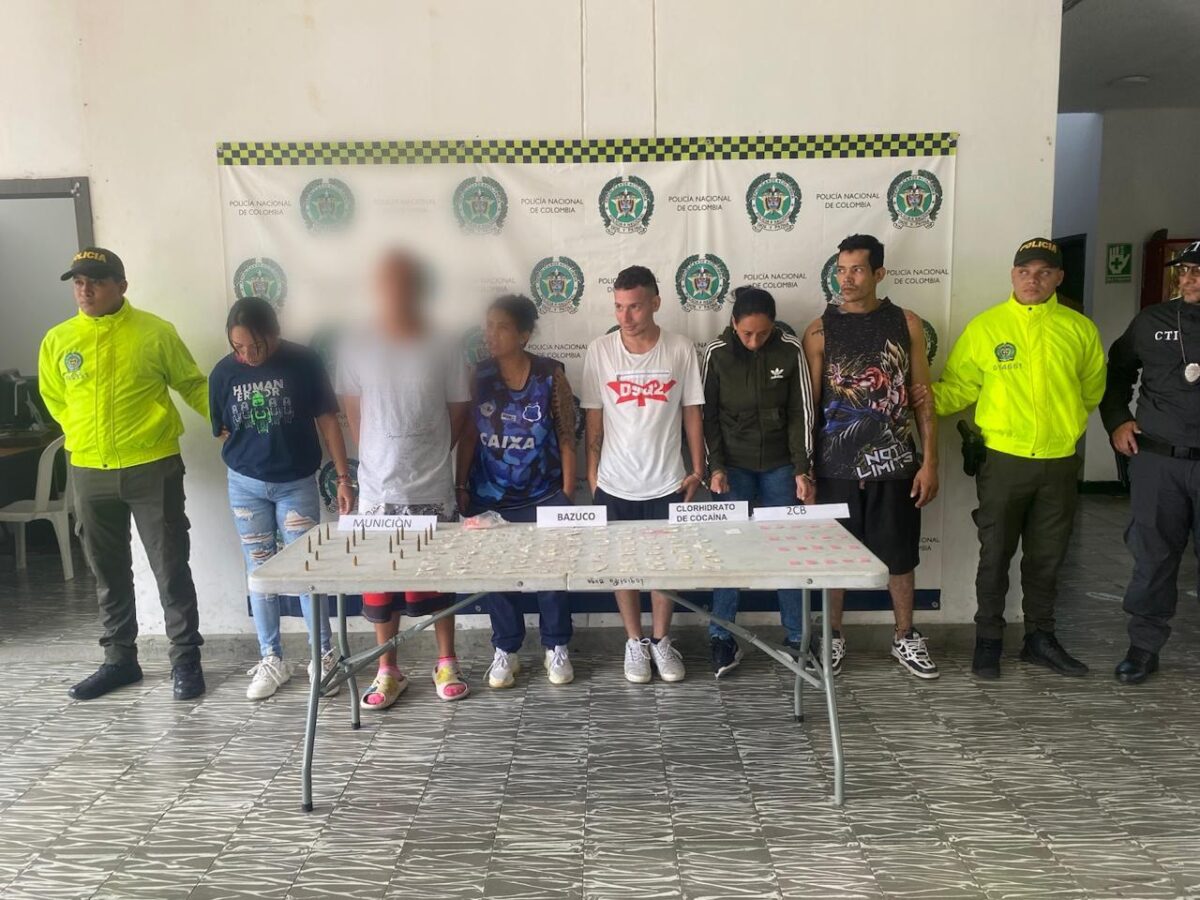Las autoridades realizaron ocho diligencias de registro y allanamiento en los barrios Alto Bonito, La Honda, Montellano y María Luisa, donde se incautaron diversas sustancias como clorhidrato de cocaína, bazuco y 2CB, además de colorantes para la elaboración de drogas sintéticas. También se encontraron armas de fuego, municiones de calibre restringido y una granada de fragmentación.